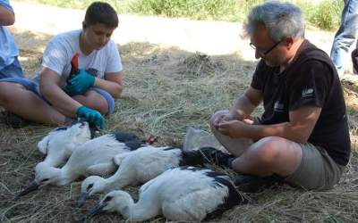 Zaobrączkowali i nakarmili bociany z Przygodzic