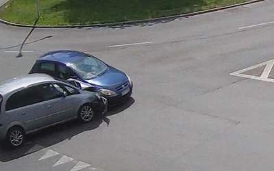 Kolizja na Rondzie Bankowym – 31 maja 2020 Peugeot i Opel