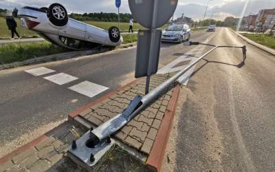 Wypadł z ronda i ściął latarnię. Młody kierowca pijany