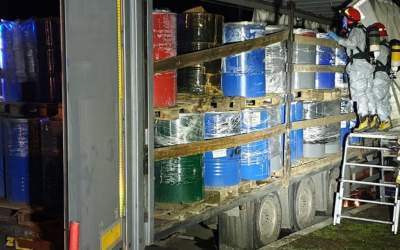 Naczepa z beczkami porzucona na trasie Ostrów – Pleszew