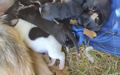 Suczka z nowo narodzonymi szczeniętami porzucona na pewną śmierć