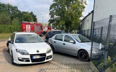Wjechał w dwa zaparkowane auta. Kierowca uciekł pieszo (ZDJĘCIA)