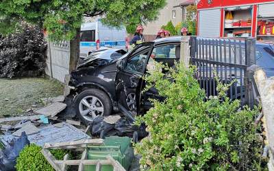 Okólna-Kwiatowa – zderzenie dwóch aut. Wjechały w ogrodzenie posesji