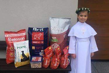 Na komunię zamiast kwiatów, zebrała karmę dla psów