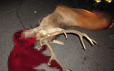 Wielki jeleń potrącony przez kilka aut