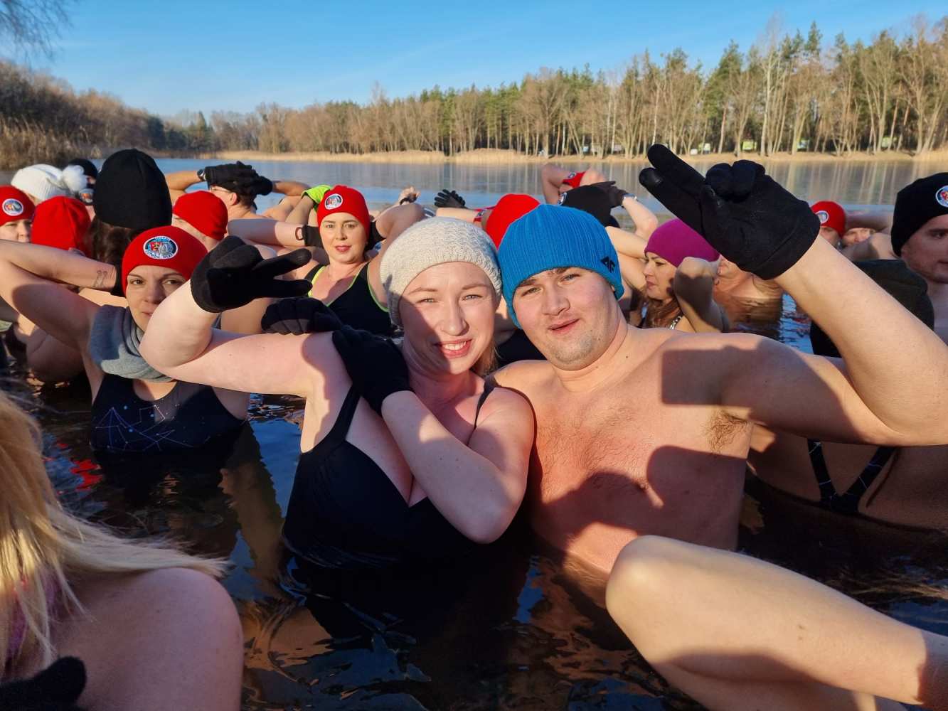 Temperatura wody poniżej dwóch stopni Celsjusza zachęciła do zanurzenia się grupy osób na ostrowskich Piaskach. Do tego skorzystali z drugiej kąpieli w promieniach słońca.