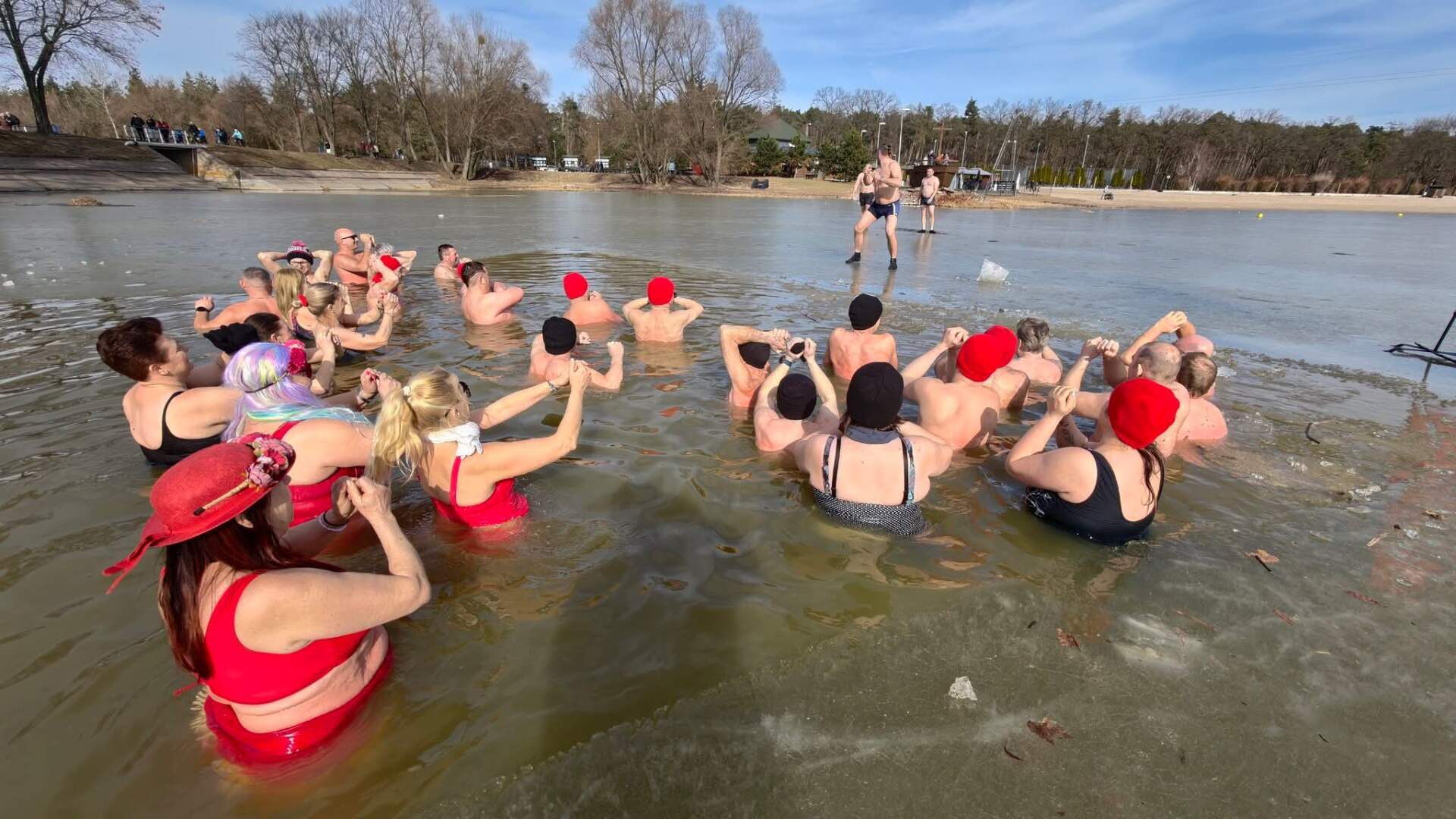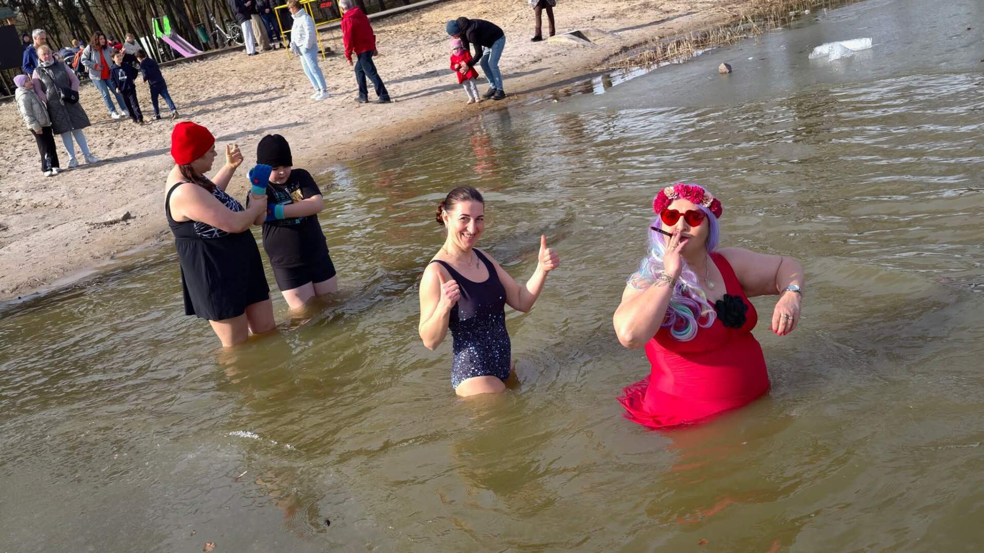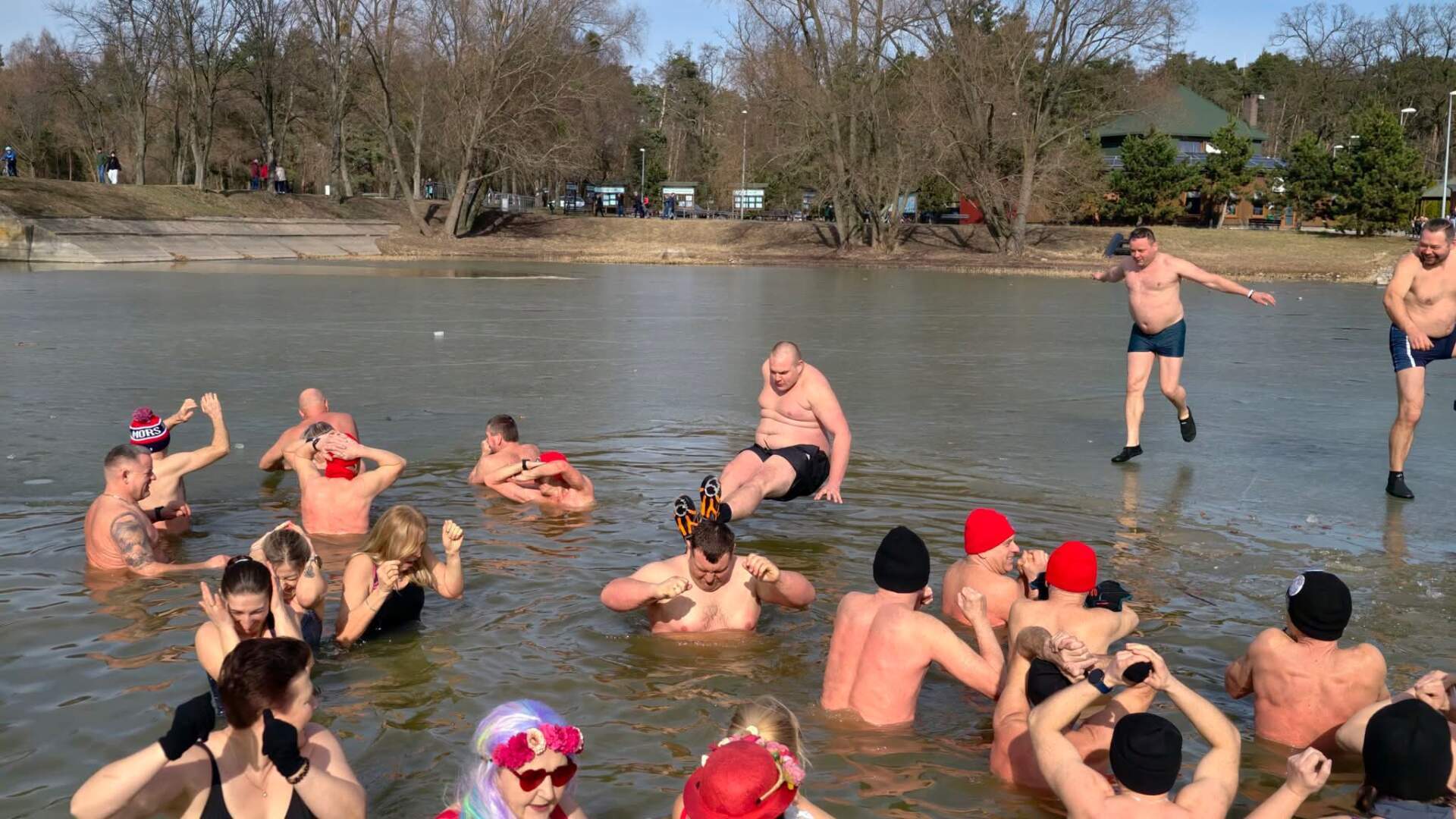 Mimo to zimowa aura wciąż daje o sobie znać, a do Lanego Poniedziałku pozostał jeszcze miesiąc. To wystarczający powód, by ostrowskie morsy korzystały z ostatnich podrygów zimy. Dzisiejszy dzień miał jednak bardziej wiosenny charakter – termometry poza wodą wskazywały nawet +10 stopni Celsjusza.