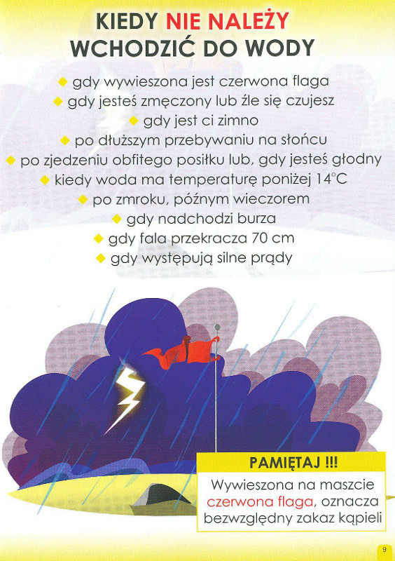Tylko przestrzegając tych podstawowych zasada możemy sprawić aby nasz wypoczynek nad wodą był bezpieczny i zakończył się szczęśliwie.