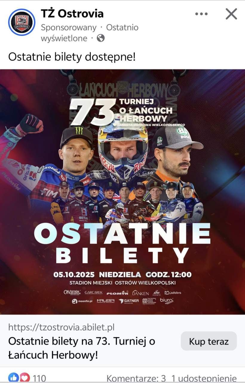 Ciekawostką jest fakt, że na profilu TŻ Ostrovia, już po odwołaniu zawodów, nadal jest widoczny sponsorowany post oferujący bilety na ten turniej.