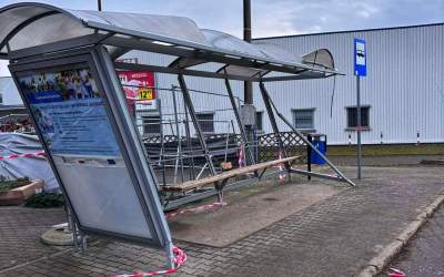 Autobus uderzył w wiatę przystankową