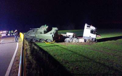 Ciężarówka z wozem pancerny wypadła z drogi (z REGIONU)