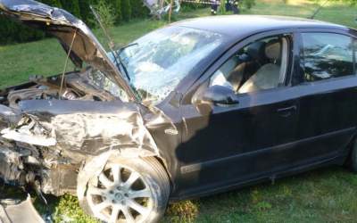 Wypadek 2 aut w Tarchałach. Jeden uderzył w dom