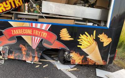 Wypadek z udziałem foodtrucka (ZDJĘCIA)