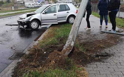 Kobieta wjechała w latarnię przy galerii