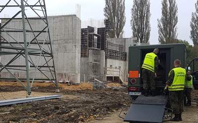 Pocisk artyleryjski na budowie stacji transformatorowej