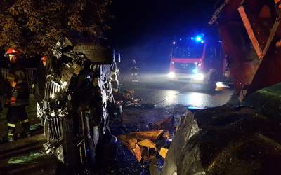 Kierowca BMW wjechał w kombajn (zdjęcia)