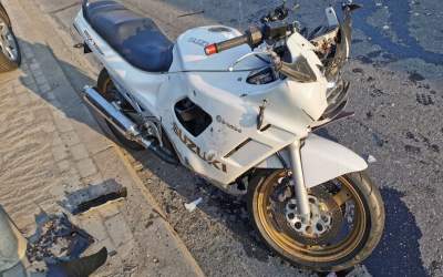 Motocyklista nie okiełznał Suzuki i wjechał w auto koło samolotu