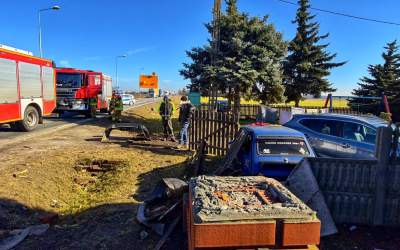 Volvo storpedowało płot. Dwie osoby ranne (ZDJĘCIA)