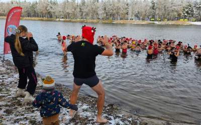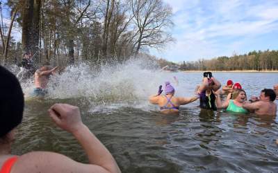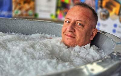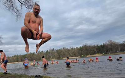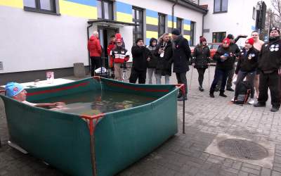 Rozpoczął bicie rekordu w lodowatej wodzie