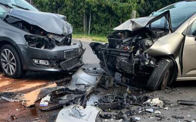 Czołowe zderzenie Szczurawice-Moszczanka. BMW zatrzymało się na polu