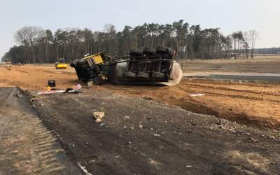 Wypadek cementowozu przy nowej obwodnicy Ostrowa