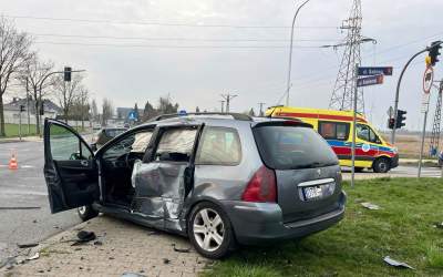 Zderzenie dwóch peugeotów na Kamienna/Sadowa