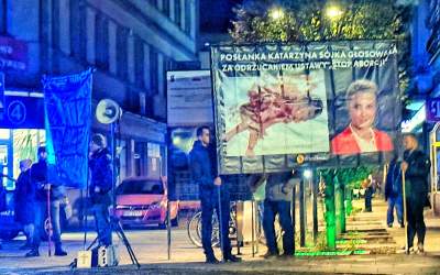 Minister zdrowia Sójka obok dziecka z aborcji