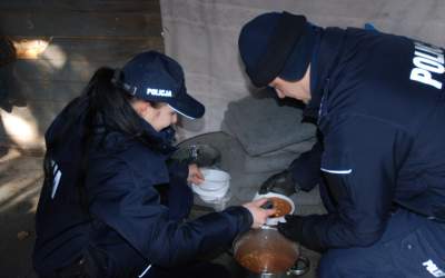 Policjanci częstowali zupą i dawali koce bezdomnym