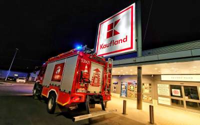 Ktoś oblał elewację sklepu nieznaną substancją. Interwencja służb (ZDJĘCIA)