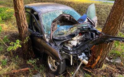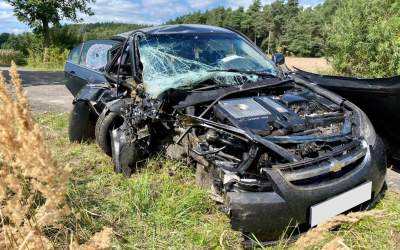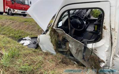 Wjechał w betonowy przepust, drzewo i ogrodzenie