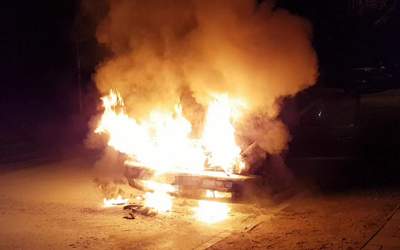 Spłonął VW Passat. Właściciel był w monopolowym (wideo)