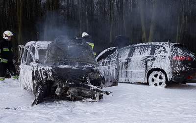 Wypadek – samochód spłonął. Poszkodowane 4 osoby (2 dzieci)