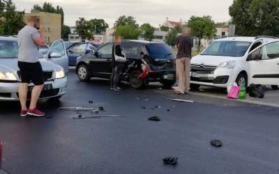 Holowany skuter uderzył w inny samochód. Rozpadł się na dwie części