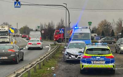 Zderzenie 3 aut na wprost galerii (ZDJĘCIA)