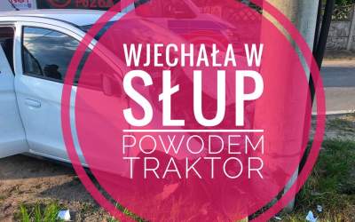 Zamiast w traktor wjechała w słup