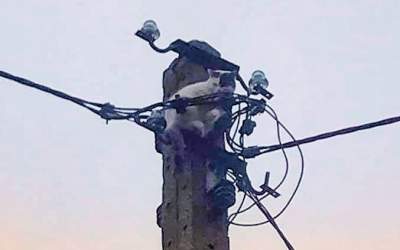 Strażacy uratowali kotka ze słupa