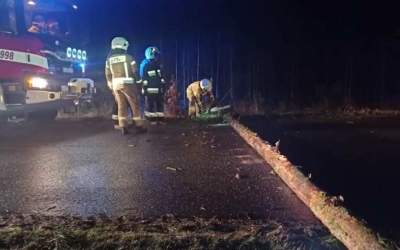 Strażacy usuwali przewrócone drzewo