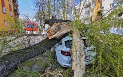 Drzewo spadło na 2 auta w centrum Ostrowa (aktualizacja)