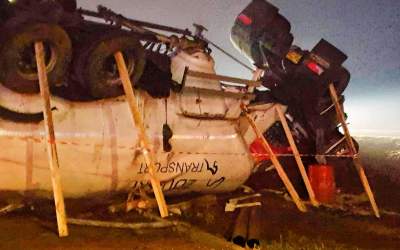 Cysterna wypadła z drogi i dachowała