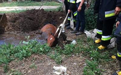Koń wpadł do gnojowicy. Pomogli mu strażacy