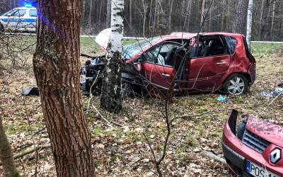Roztrzaskał renault wpadając do lasu