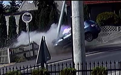 Po alkoholu wjechał w słup – nagranie z monitoringu!