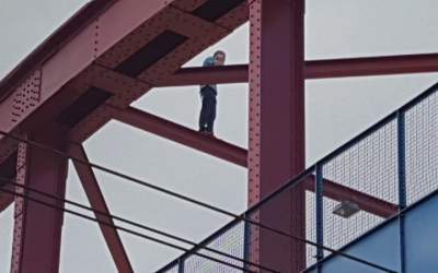 Wszedł na górę wiaduktu odolanowskiego (ZDJĘCIA)
